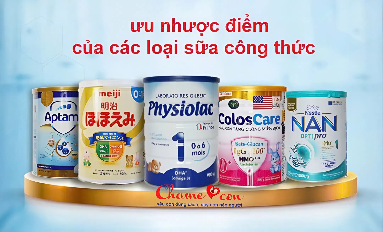 Hiện nay, thị trường có nhiều dạng sữa công thức như sữa bột, sữa thanh, sữa pha sẵn… nhưng phổ biến và dễ bảo quản nhất vẫn là sữa bột đóng lon. Mẹ nên lựa chọn sữa dựa trên giai đoạn phát triển của trẻ để đảm bảo phù hợp với khả năng hấp thu và nhu cầu dinh dưỡng theo từng độ tuổi: từ 0–6 tháng, 6–12 tháng, 1 tuổi trở lên…