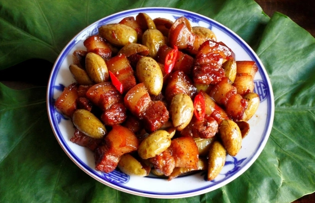 Kho thịt với trám xanh: Nên kho thịt qua hai lần lửa để món ăn vừa đậm đà vừa có màu đẹp mắt.